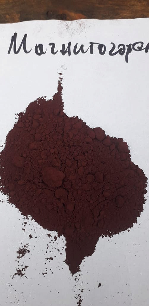Железный сурик для лакокрасочной промышленности, представляющий собой природный неорганический пигмент красно-коричневого цвета, состоящий из оксида железа с примесью глинистых минералов и кварца.