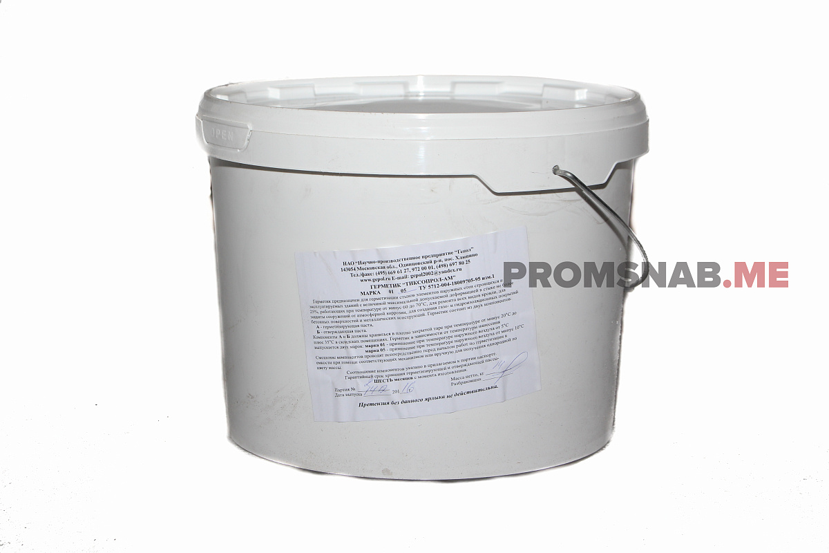 Мастика тиоколовая Тиксопрол- представляет собой двухкомпонентный отверждающийся герметик: компонент 1 - герметизирующая паста компонент 2 - отверждающая паста Упаковка: комплект 14 кг Работы по герметизации стыков...