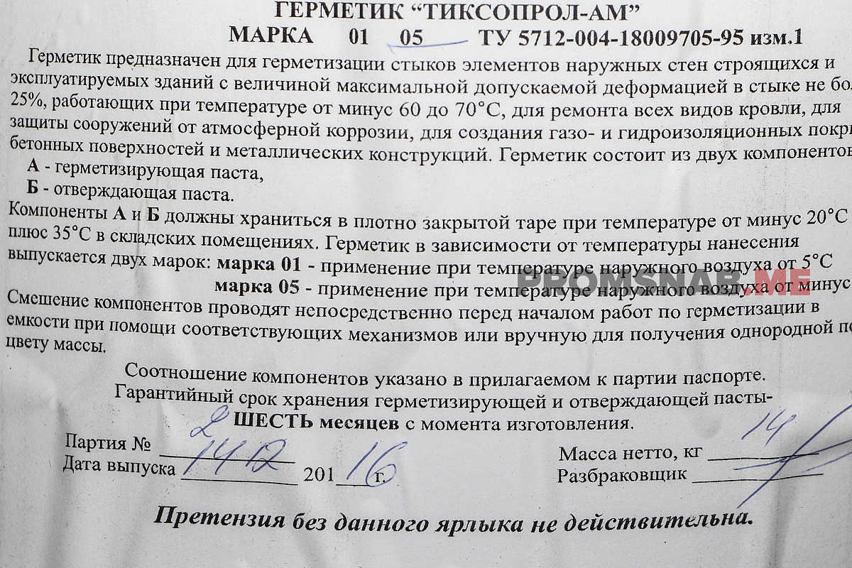 Герметик тиоколовый Тиксопрол-АМ
