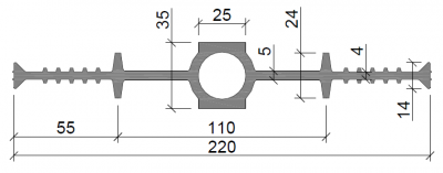 Герметизация деформационных швов элементов конструкций при строительстве зданий и сооружений различного назначения. ОСНОВНЫЕ ХАРАКТЕРИСТИКИ Материал ПВХ-П Бухта, м 30 Давление воды, МПа 0,44 Растяжение, мм 16 Сдвиг...