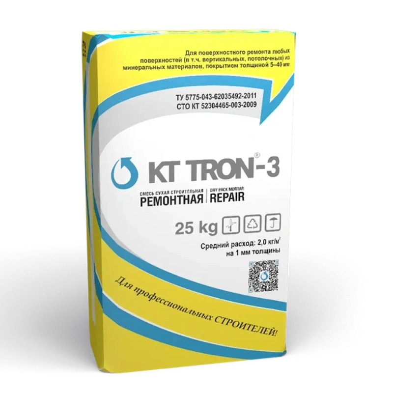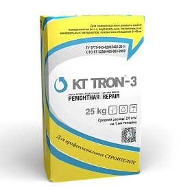 КТтрон-3 – сухая смесь, состоящая из цемента, минерального заполнителя, армирующего волокна и модифицирующих добавок. При смешивании с необходимым количеством воды образует безусадочный тиксотропный раствор с высокой степенью адгезии к арматуре и ремонтируемому основанию.