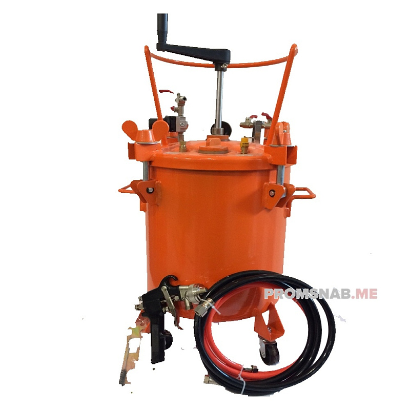 Красконагнетательный бак представляет собой герметичный бак объемом 10 литров из прочного литого корпуса. Бак красконагнетательный служит для подачи лакокрасочных материалов под давлением в краскораспылитель.