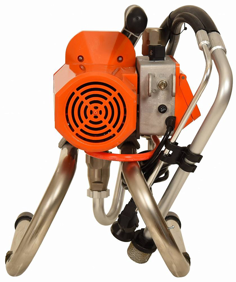 Аппарат оборудован надежным, проверенным временем, поршневым насосом, приводимым в действие бесщеточным электродвигателем мощностью 1300 Ватт. Двигатели этого типа и соответствующей мощности использовались в самой популярной модели для интерьерных малярных работ- ASPRO-2700.