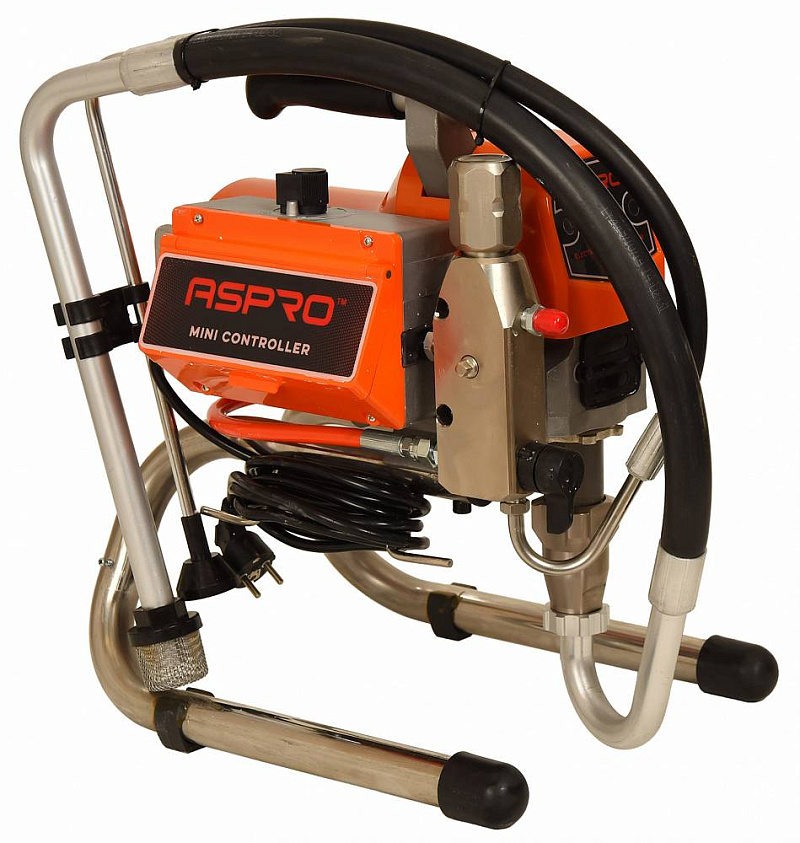 Стабильность распыления обеспечивается наличием тензометрического датчика давления и электронной системой контроля оборотов электродвигателя (аналогичная система устанавливается и на более дорогие окрасочные аппараты ASPRO-2700, ASPRO-3100, ASPRO-3100H).