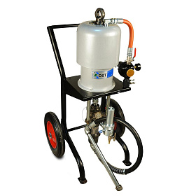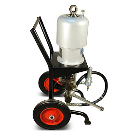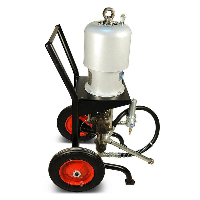Поршневой окрасочный агрегат для безвоздушного распыления вязкой краски, работающий от сжатого воздуха из компрессора или от заводской пневматической сети. Окрасочный агрегат предназначен для промышленной покраски на заводах по производству металлических конструкций, вагонных заводах, на производствах, где требуется массовая покраска однотипных изделий одной и той же краской. Также аппарат применяется для антикоррозионной покраски, обработки металла цинконаполненными красками, покраски мостовых конструкций, многоэтажных домов, судов. Агрегат может распылять безвоздушным способом краски на водной основе и краски на растворителях. С красками средней вязкости он может работать на два-три малярных поста одновременно.