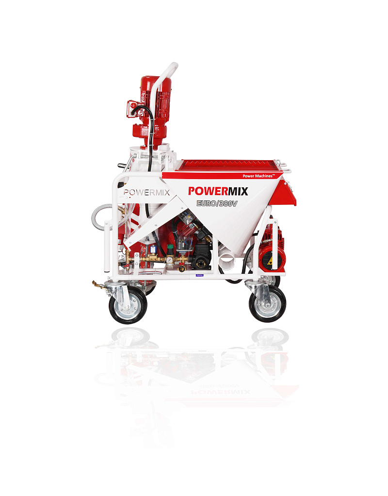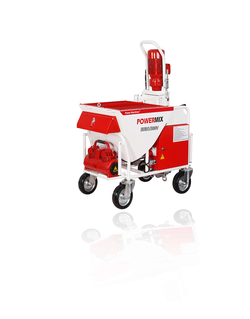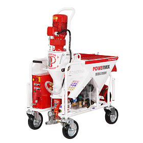 PowerMix EURO — это штукатурная станция высокой производительности, используемая для внутренних и наружных штукатурных работ. Конструкция станции проверена годами и её работоспособность не вызывает сомнений. Она способна выполнять работы с любыми гипсовыми и цементными смесями, предназначенными для машинного нанесения.
