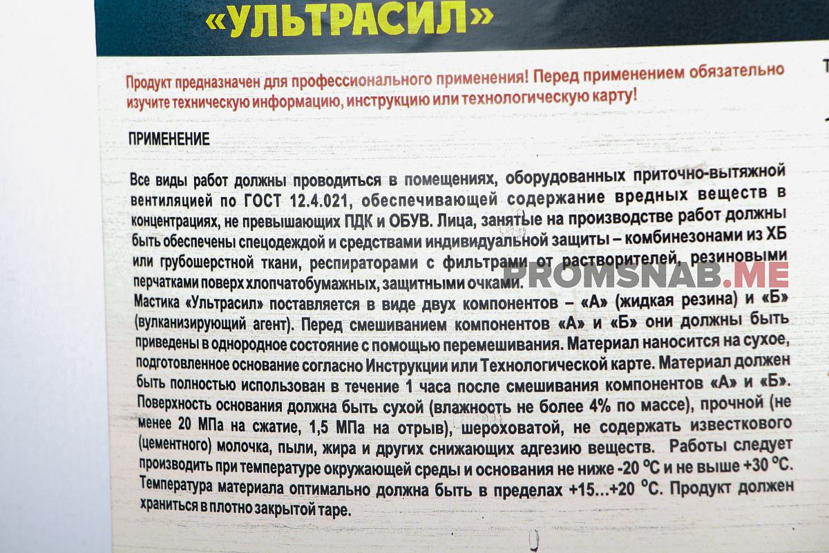 Технические данные мастики Ультрасил: